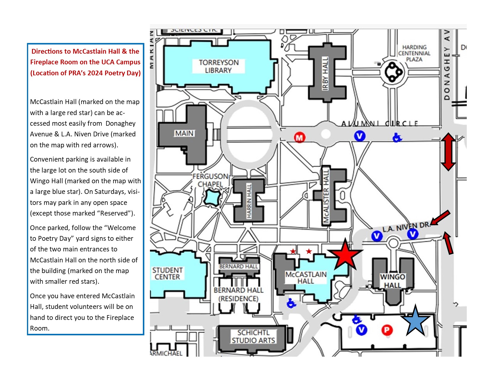 > SPECIFIC DIRECTIONS for UCA Fireplace Room and Parking - 2024 National Federation of State Poetry Societies